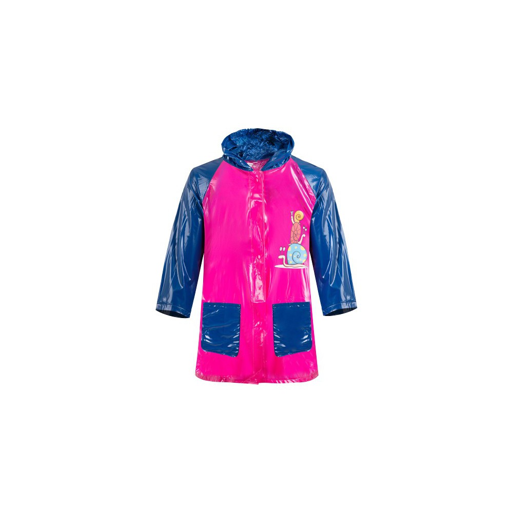 Dětská pláštěnka vyrobená z lesklého 100% PVC, dvoubarevná, s kapucou.