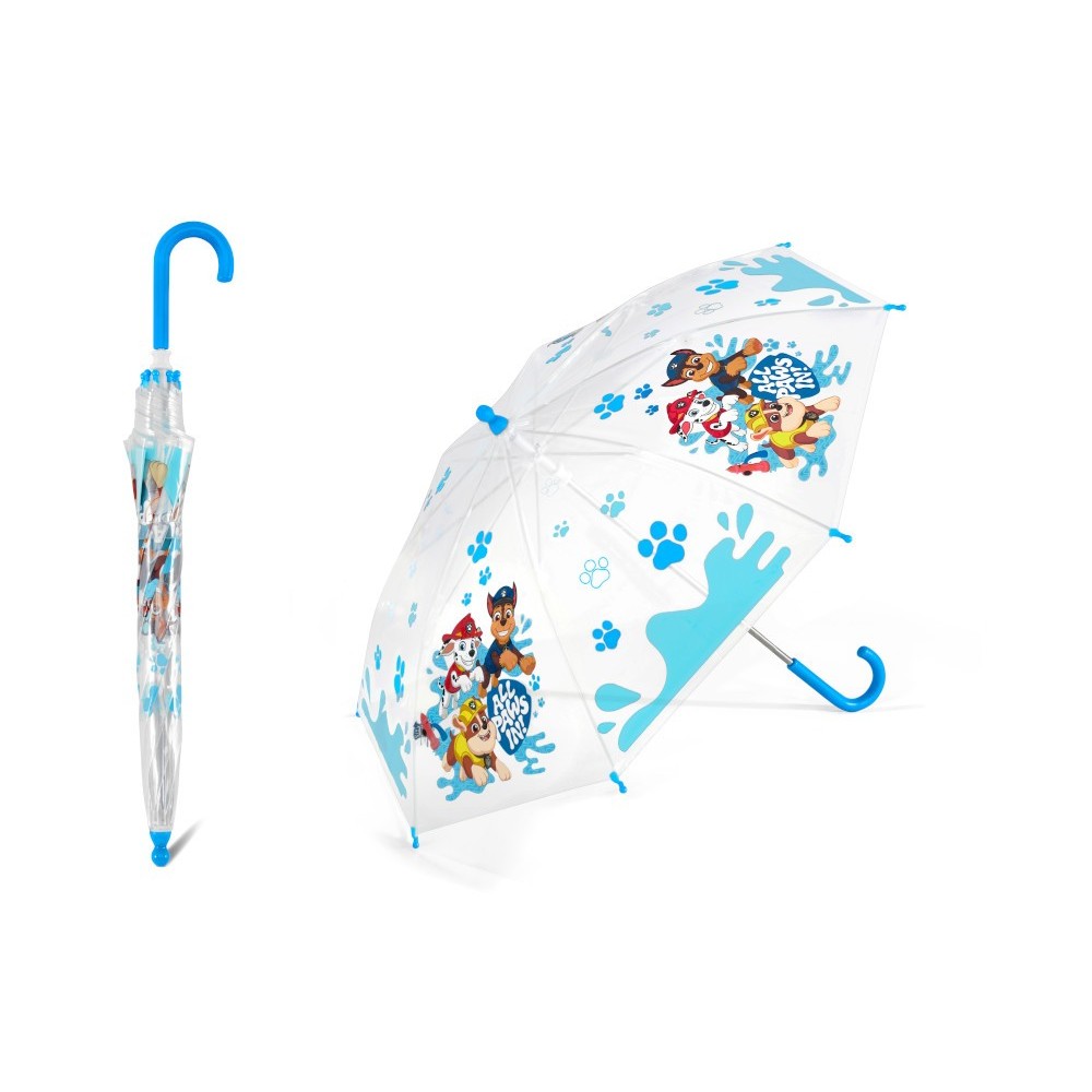 Dětský průhledný deštník pro nejmenší kluky (pro předškoláky) s desénem hrdinů z Tlapkové patroly.