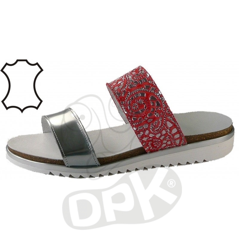 Nártové přední a zadní pásky jsou vyrobeny z měkkých designových syntetických pásků od italského výrobce. Módní design nártových pásků podtrhuje kožený rámek podešve s drobnými decentními kytičkami. Kvalitní flexibilní podešev s flexibilní pohodlnou fusbetovou stélkou, která má povrch z přírodní kůže, zajišťují pohodlný pohyb nohy při chůzi.
