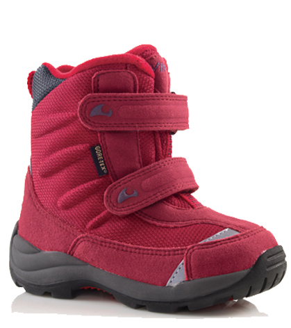 Dětská zimní zateplená obuv s membránou GORE-TEX zn. VIKING, díky které je obuv voděodolná s vysokým komfortem uvnitř obuvi - nepustí vlhkost dovnitř a zároveň přebytečnou vlhkost uvnitř obuvi odvádí ven. Zapínání na suché zipy.