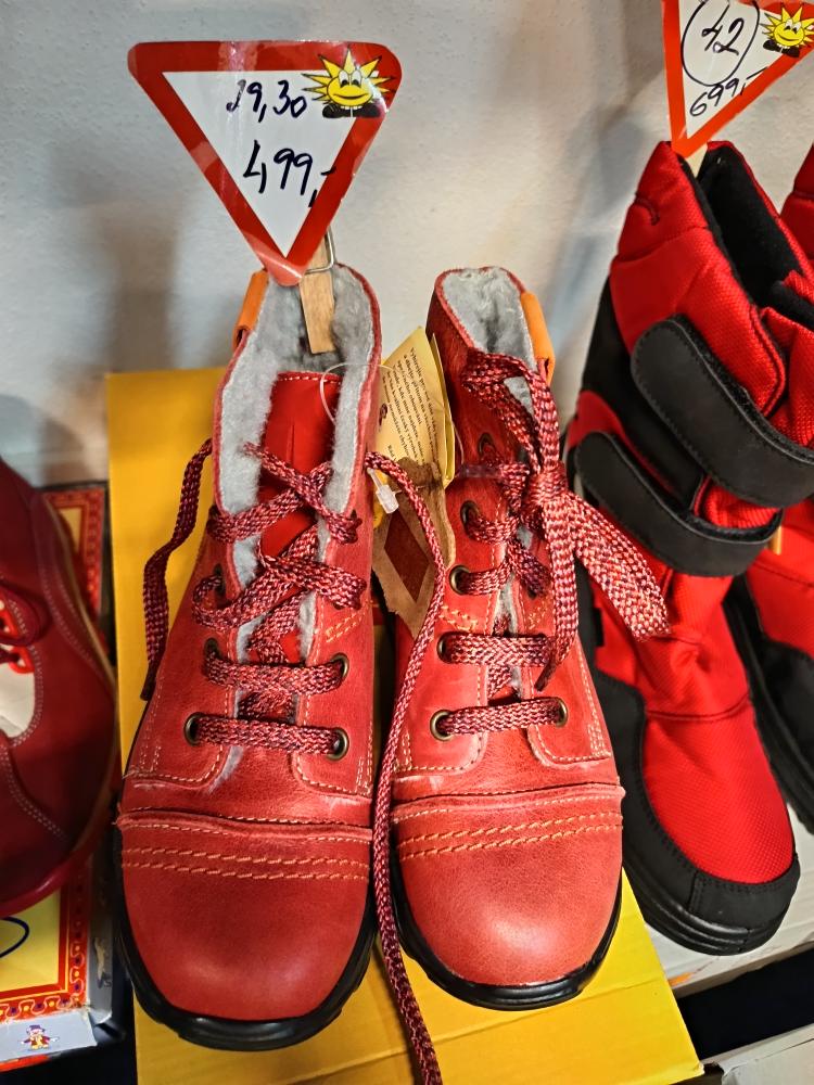 - celokožená zimní obuv, zapínání na tkaničku, zvýšená nad kotníky, vyteplená kožíškem (E 1079)